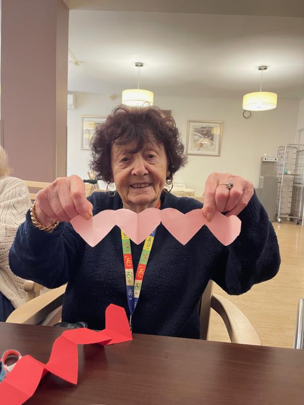 Pour la saint-valentin, journée consacrée aux Amoureux, les résidents de la résidence Les Hautes Futaies ont confectionné des guirlandes de cœurs en papier. 💞