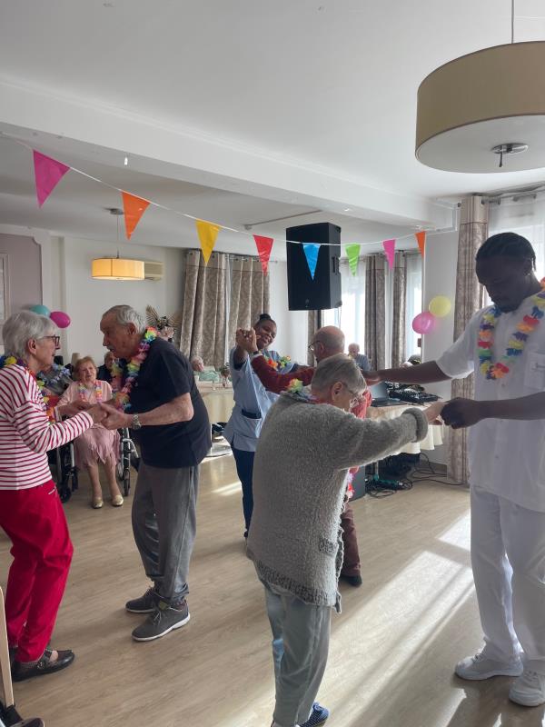 Pour l’occasion, le chanteur Dimitri a animé ce moment festif qui a rapidement fait naître sourires et bonne humeur. La musique a rythmé l’après-midi et plusieurs résidents se sont laissés entraîner sur la piste pour quelques pas de danse. Entre chansons connues et refrains repris en chœur, l’ambiance était joyeuse et pleine d’énergie.