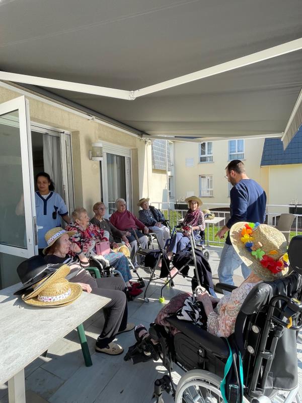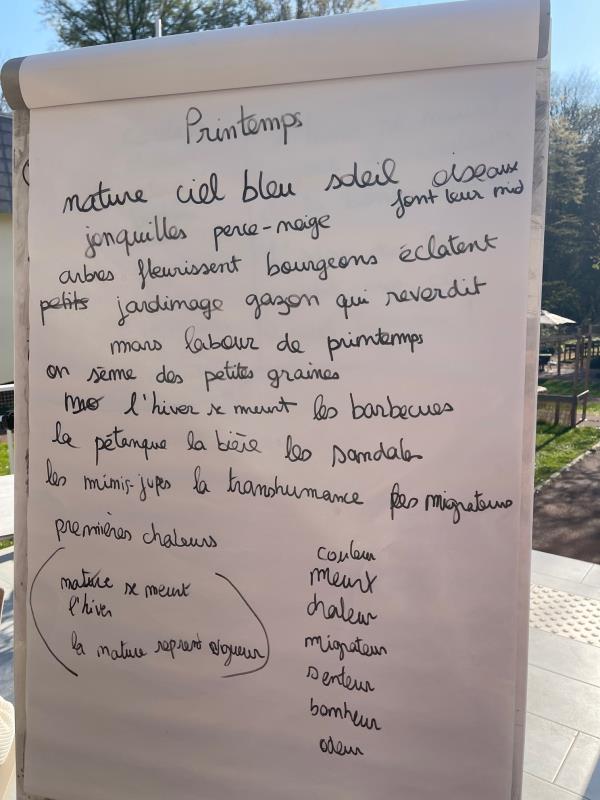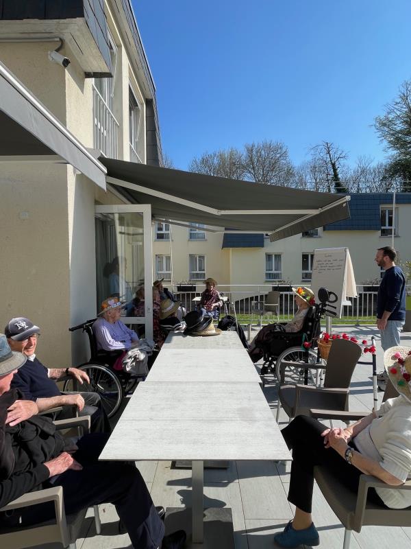 Pour ces premières chaleurs de l’année, les résidents se sont retrouvés sous un soleil doux, assis en terrasse. Ce moment a été l’occasion de laisser libre cours à leur imagination et à stimuler leur mémoire et leur créativité durant l’atelier poésie spécial « printemps »