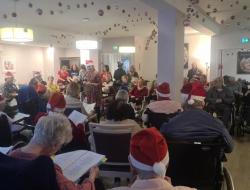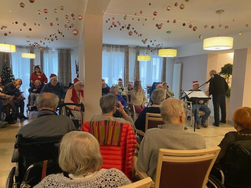 Pour célébrer les fêtes de fin d'année d'une manière toute particulière, un bon groupe de résidents a eu l'opportunité de travailler chaque semaine durant un mois quelques chansons de noël grâce à la douceur, la patience et le professionnalisme de Céline, la belle-fille d'une résidente.