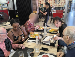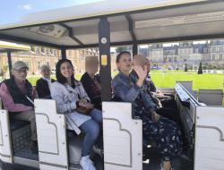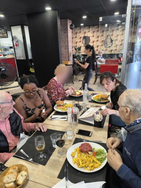Après une visite guidée des jardins du château en petit train, ils se sont retrouvés à table dans un bon restaurant ! 🚂🥘🥙